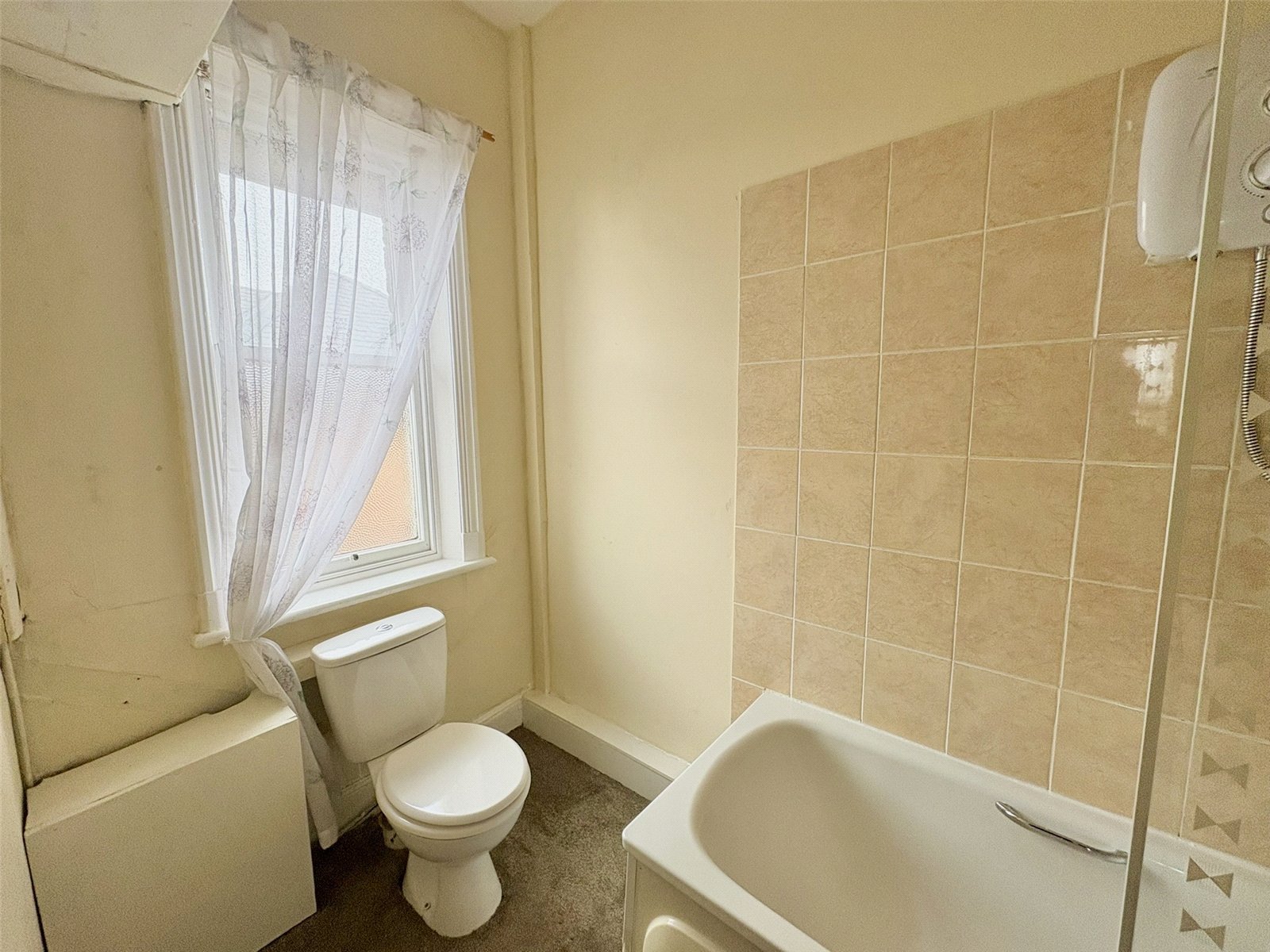 - • Bathroom with shower over bath