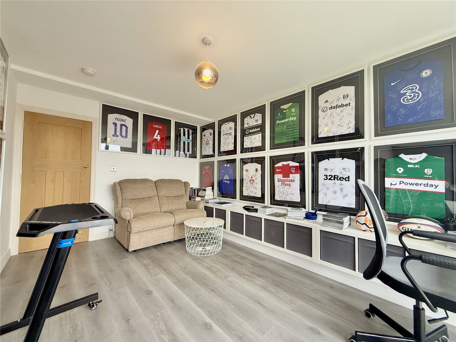 The first floor offers four well-proportioned bedrooms, including two expansive principal rooms, one of which features a beautiful bay window overlooking the front of the property. Two additional bedrooms provide excellent accommodation for family living or home working. The floor is completed by a stunning family bathroom, featuring a freestanding oval bath, walk-in shower and elegant contemporary tiling.