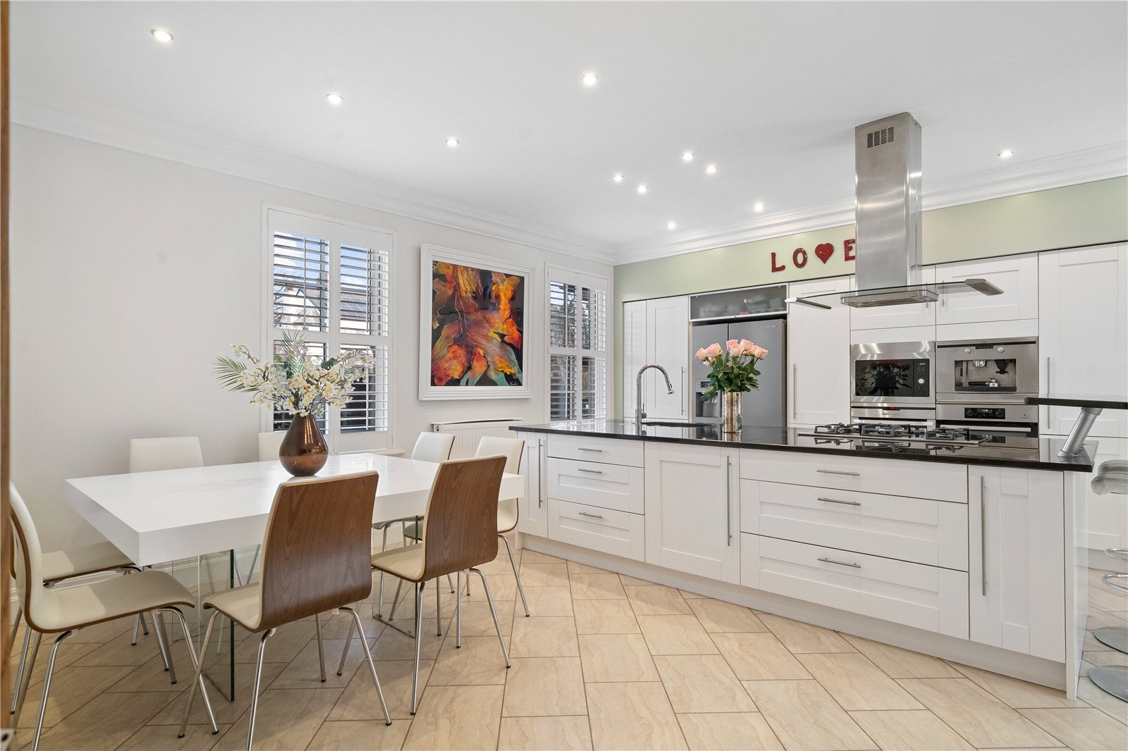 The show-stopping open-plan kitchen/diner flows effortlessly from the hallway and has been finished to the highest standard, boasting sleek cabinetry, generous workspace and integrated appliances including a coffee machine, microwave and double oven. From here, the kitchen/diner transitions seamlessly into the stunning orangery a beautiful, light-filled space with French doors opening directly onto the rear garden, offering the perfect blend of indoor and outdoor living.
