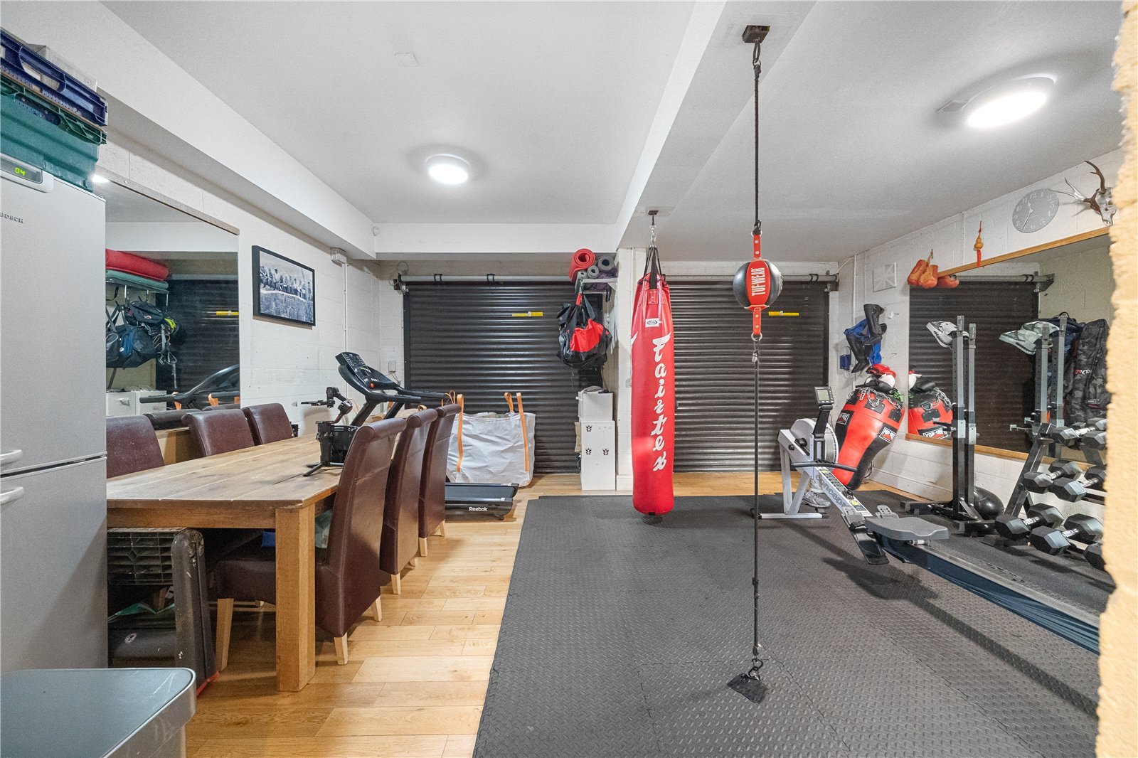 Just off the kitchen, you’ll find a modern utility room and internal access to the garage, which is currently utilised as an impressive home gym. The ground floor also features a stylish downstairs W/C, a cloakroom and a dedicated office, ideal for home working or study.