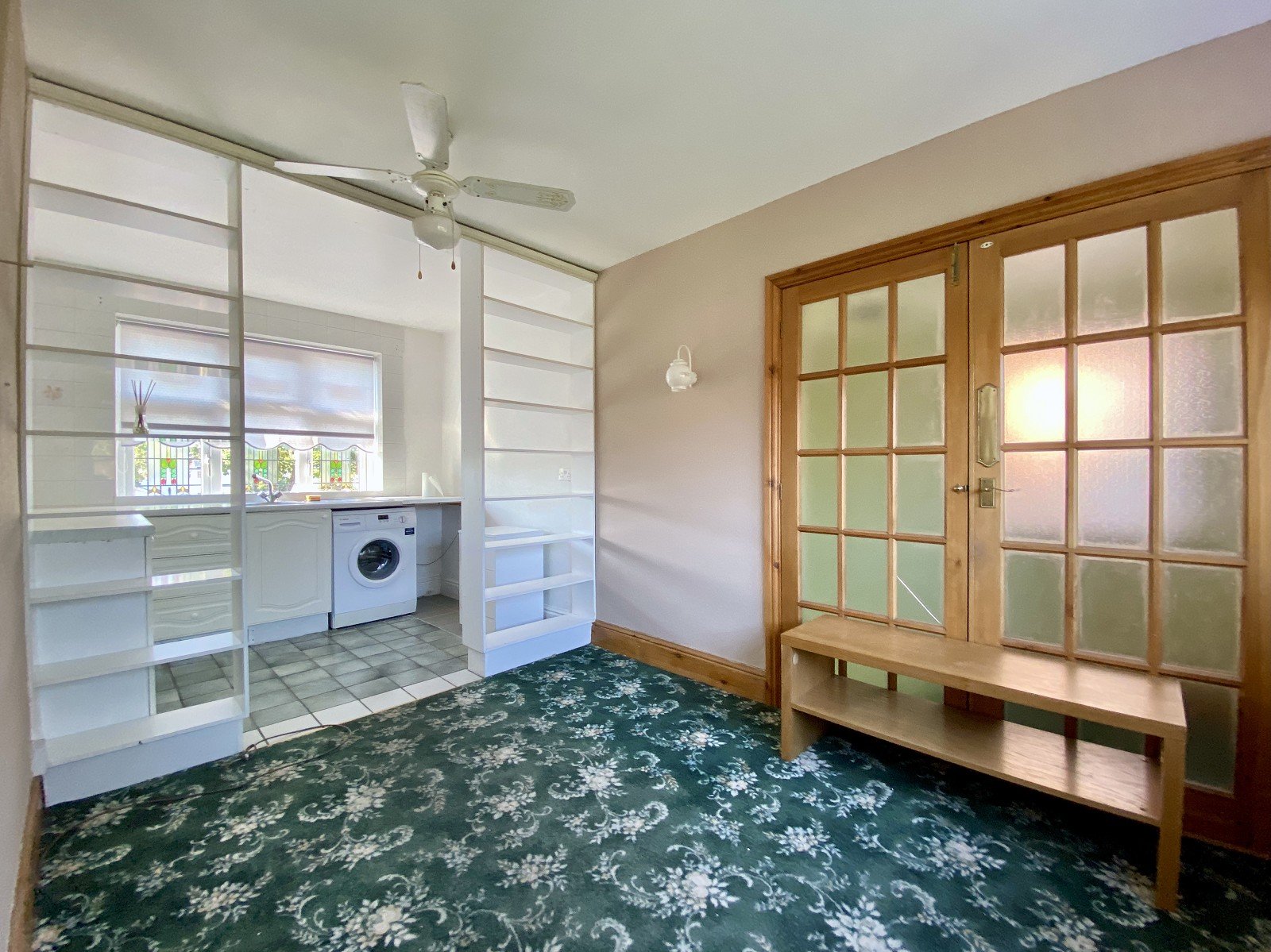 To the rear, the modern fitted kitchen provides ample storage and workspace, complementing the home’s character while offering everyday practicality.