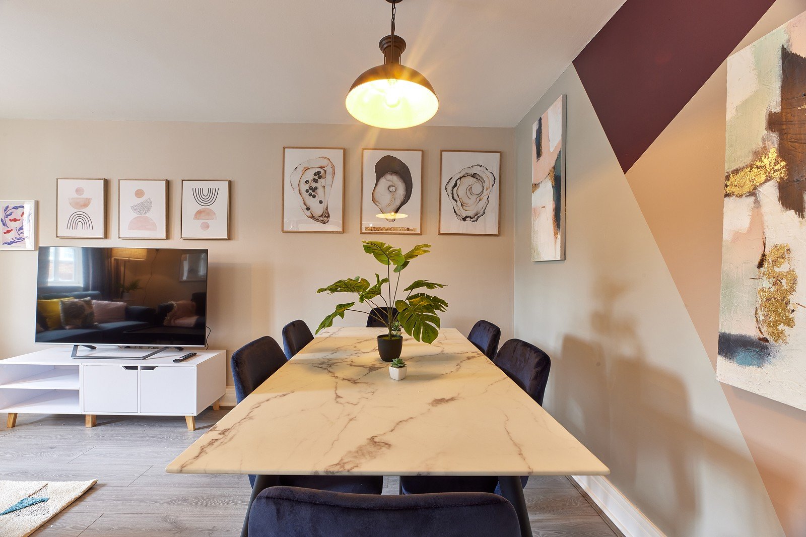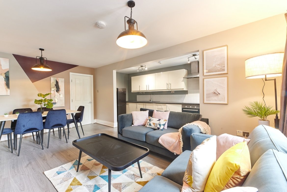 Spacious Living Area: After a full day of lectures and study sessions, unwind in the welcoming, open plan living and dining area. Its comfortable seating and contemporary decor create the perfect ambiance for relaxation, TV watching, or engaging in conversations with your housemates.