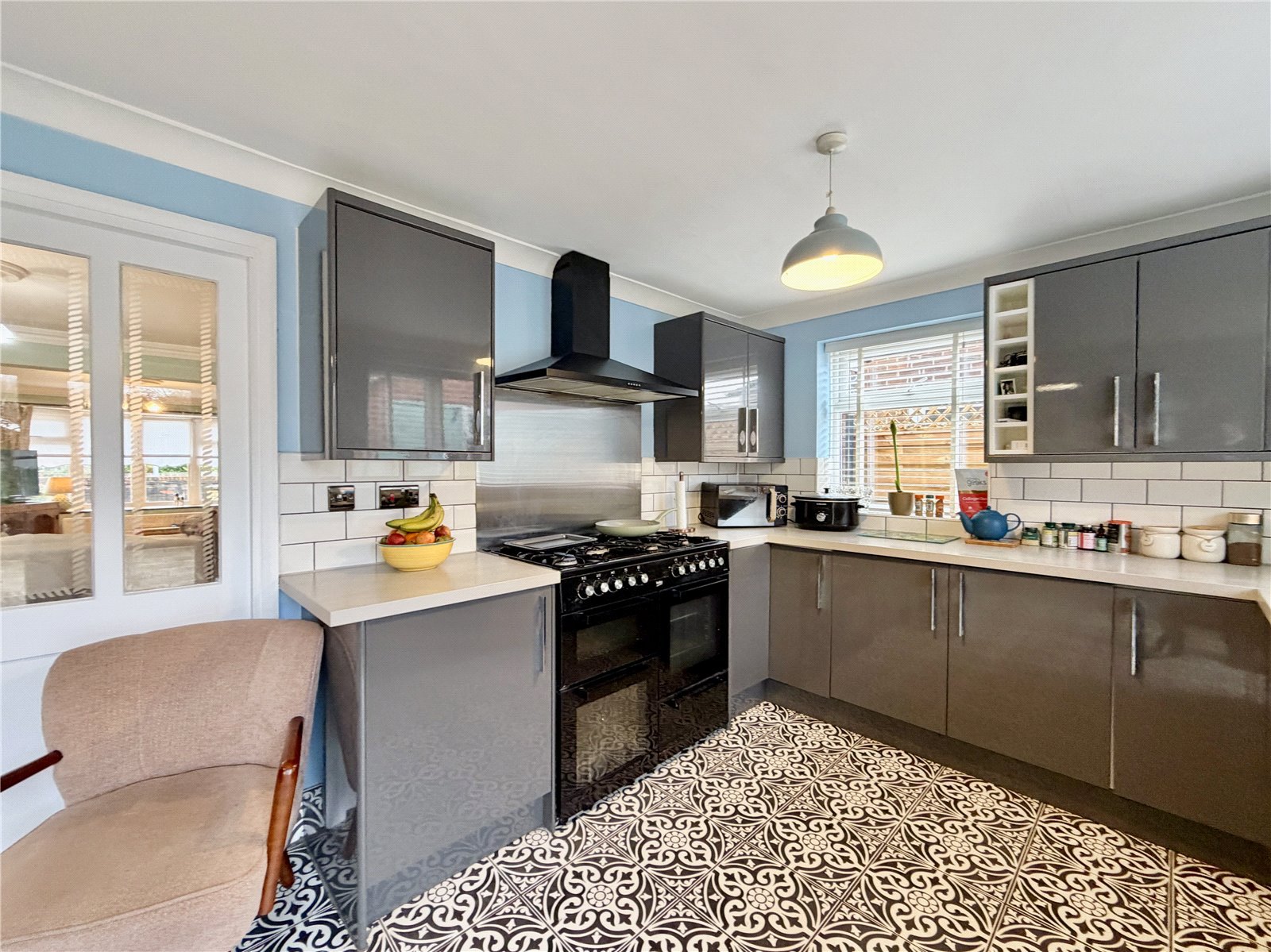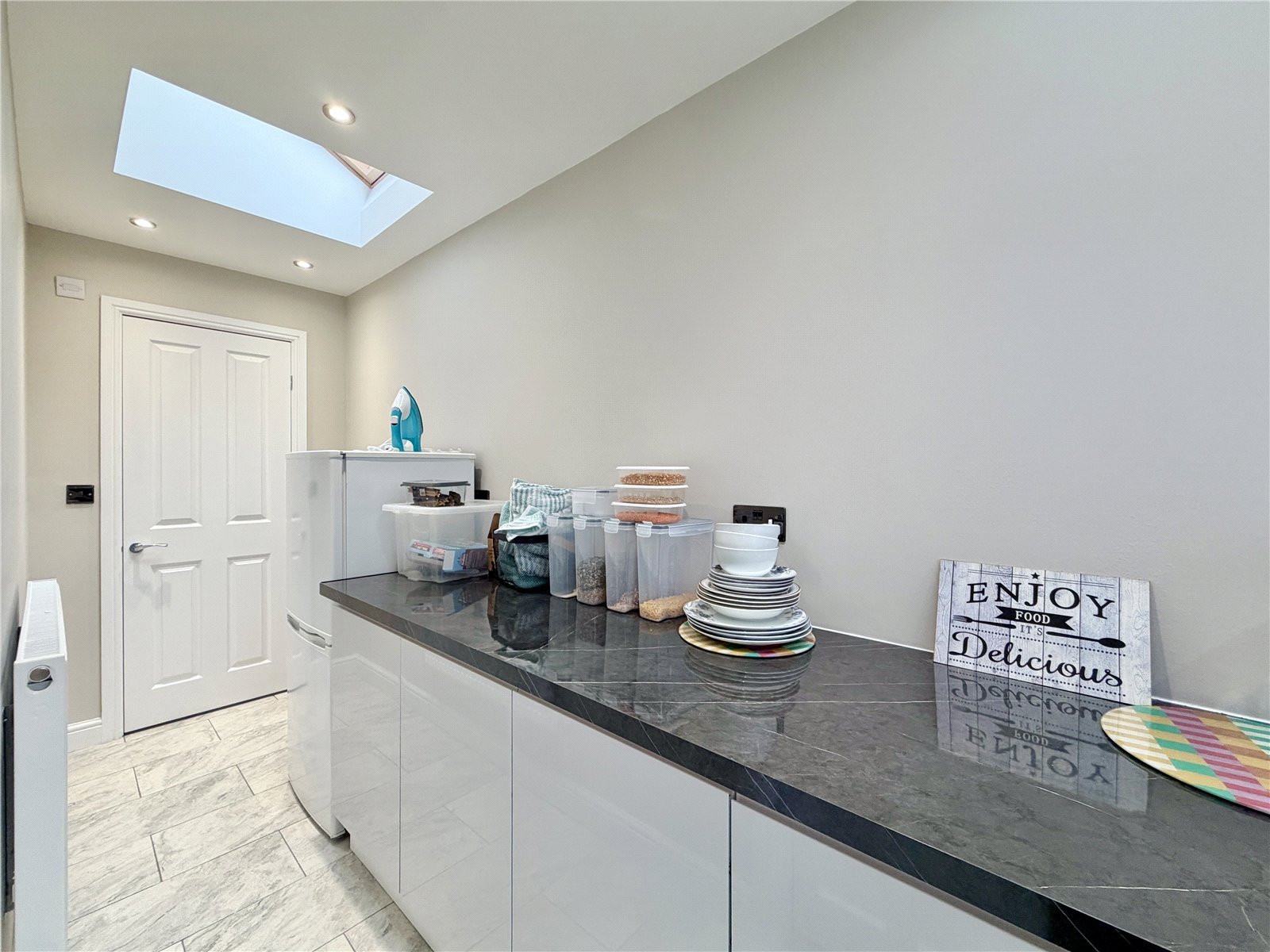 To the rear, you’ll find a modern, fully fitted kitchen, tastefully decorated and finished with high-quality fixtures and fittings, offering ample storage and workspace. The brand-new side extension further enhances the ground floor, housing a practical utility room and a super-stylish downstairs shower room complete with a large walk-in shower and WC. These spaces benefit from new Velux windows, allowing natural light to flood in and creating a bright, contemporary feel throughout.