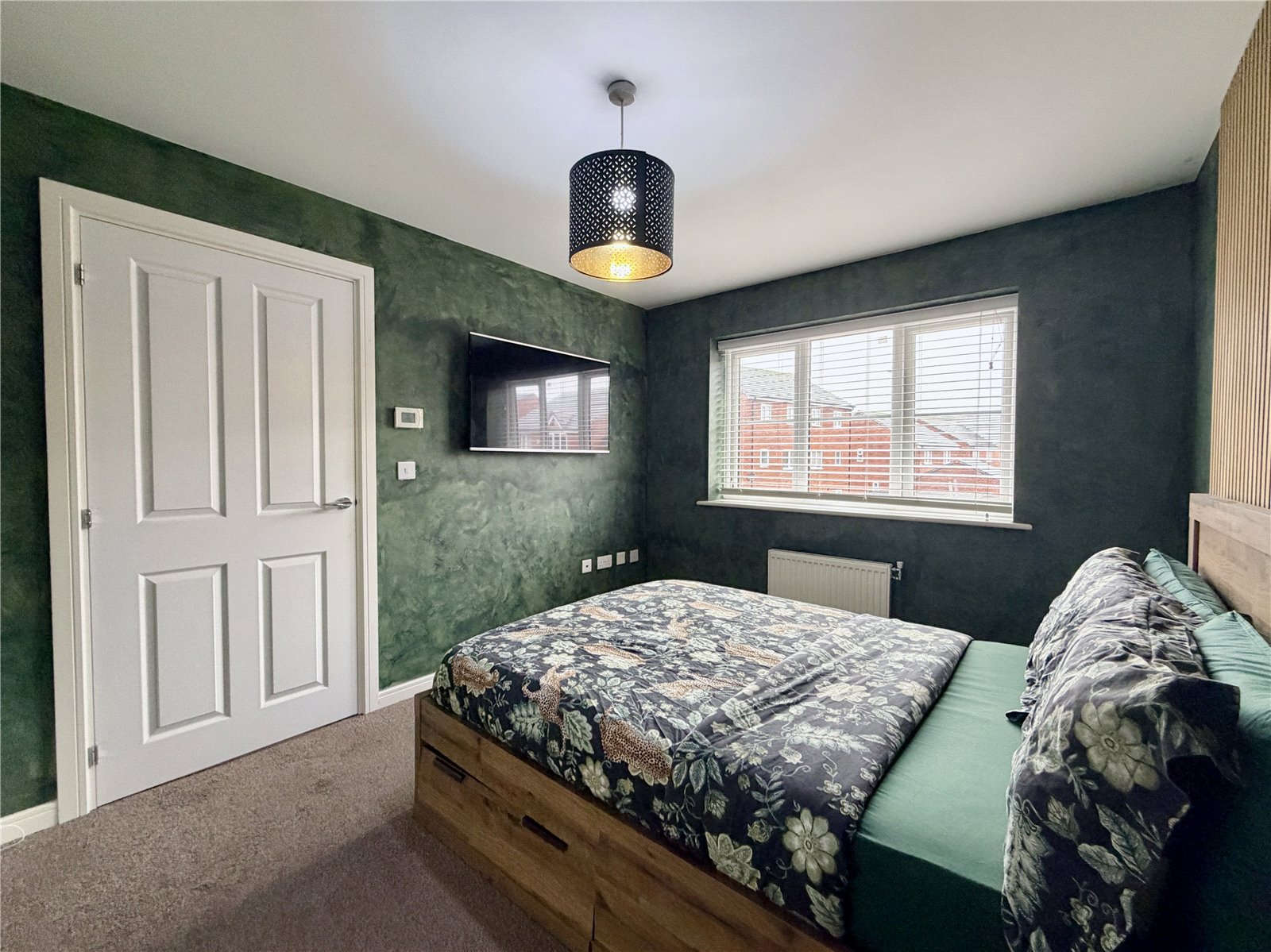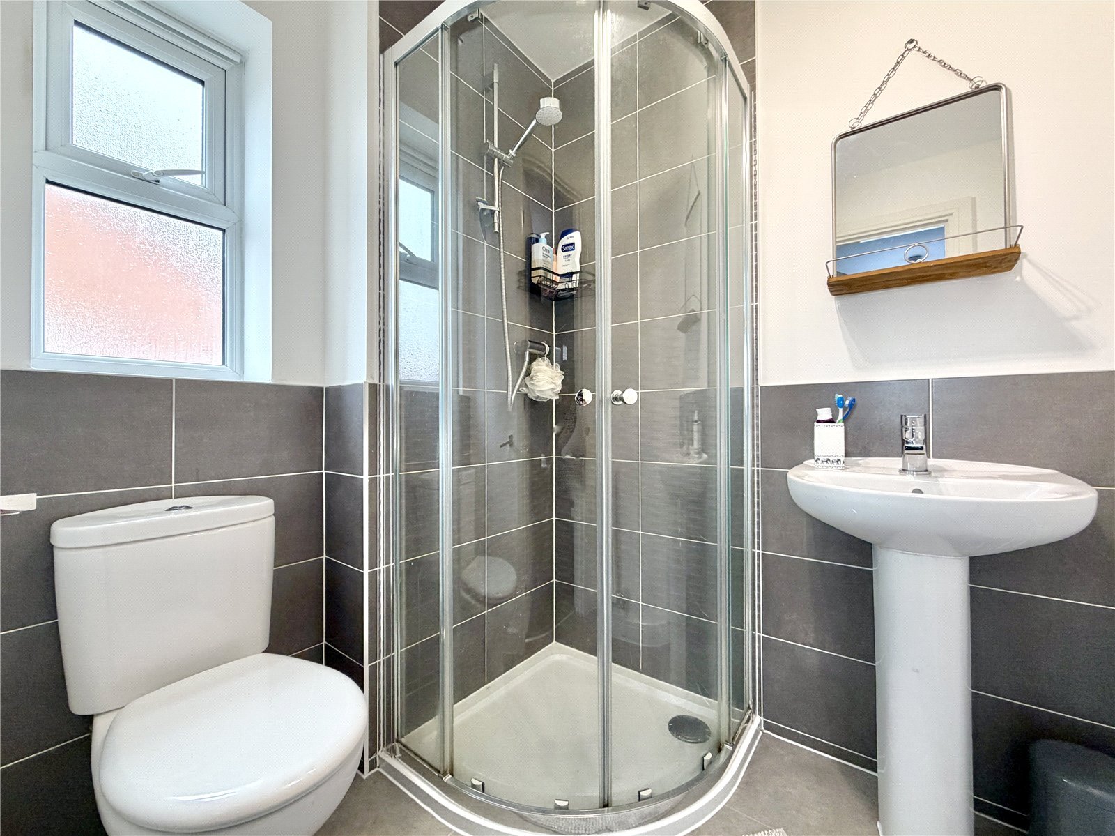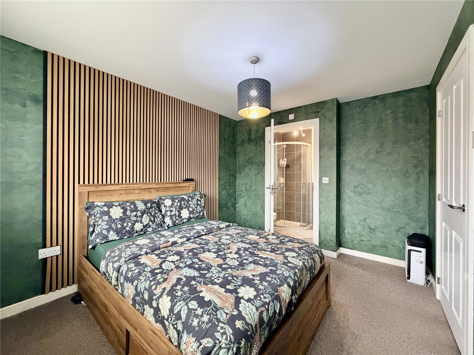 Upstairs, the property offers three well-proportioned bedrooms. The spacious master bedroom benefits from its own modern en-suite shower room, while a second generous double bedroom and a versatile third bedroom (ideal as a child’s room, nursery, or home office) provide flexible living options. Upstairs is also servd by a stylish family bathroom. The landing features a useful storage cupboard for added practicality.
