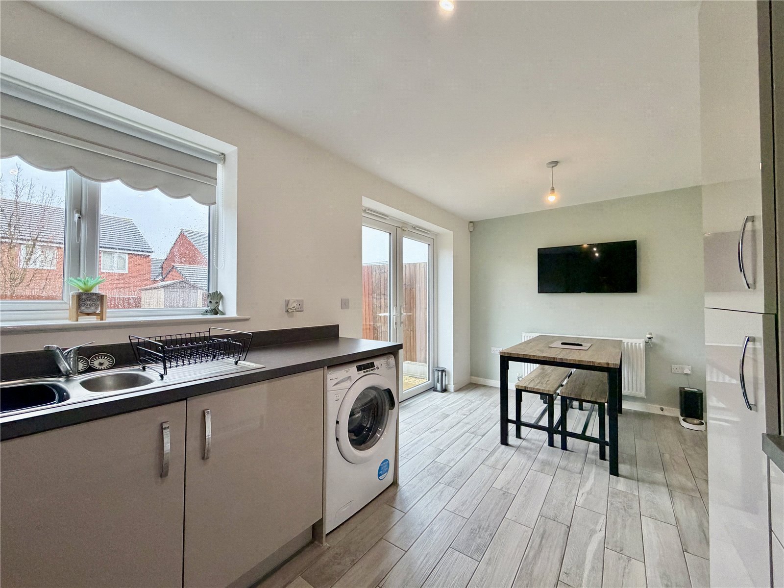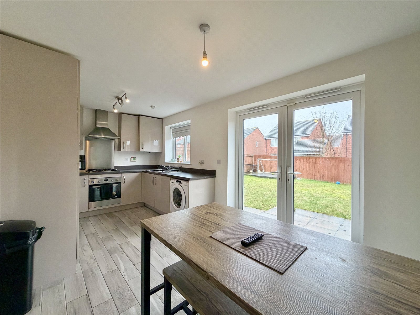 Inside, a welcoming entrance hall leads to a bright and tastefully finished living room. To the rear, the impressive open-plan kitchen and dining space forms the heart of the home, complete with contemporary units, ample worktop space and room to dine and entertain. A handy ground floor WC adds extra convenience.