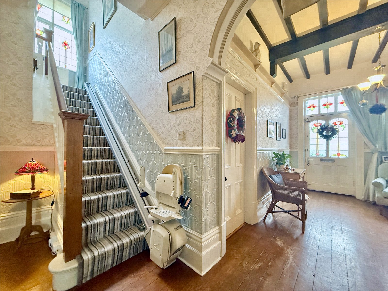 From the outset, the home makes a striking first impression. Positioned behind secure gates, the attractive front garden, sweeping driveway and detached garage immediately convey both privacy and grandeur. Step inside and you are greeted by a sense of scale and refinement rarely found in modern homes – wide hallways, soaring ceilings and beautifully retained original features create an atmosphere of timeless character and warmth.