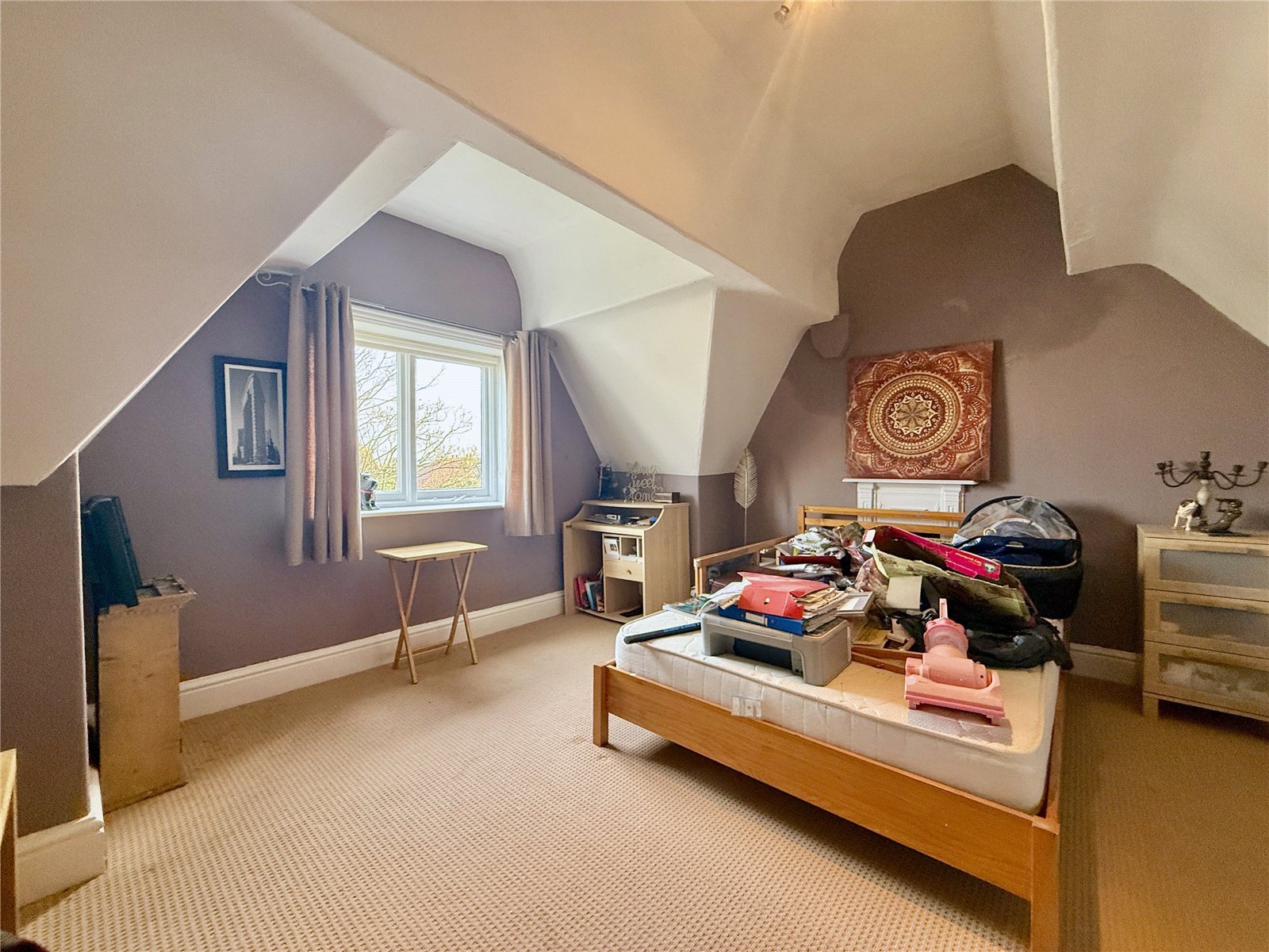 The first floor continues to impress, offering four well-proportioned bedrooms, each filled with character and charm, alongside a family bathroom that comfortably serves the floor. A secondary staircase leads to the top floor, where a superb converted space reveals two further bedrooms and a dedicated office – perfect for home working, guest accommodation or creating a private retreat for older children.