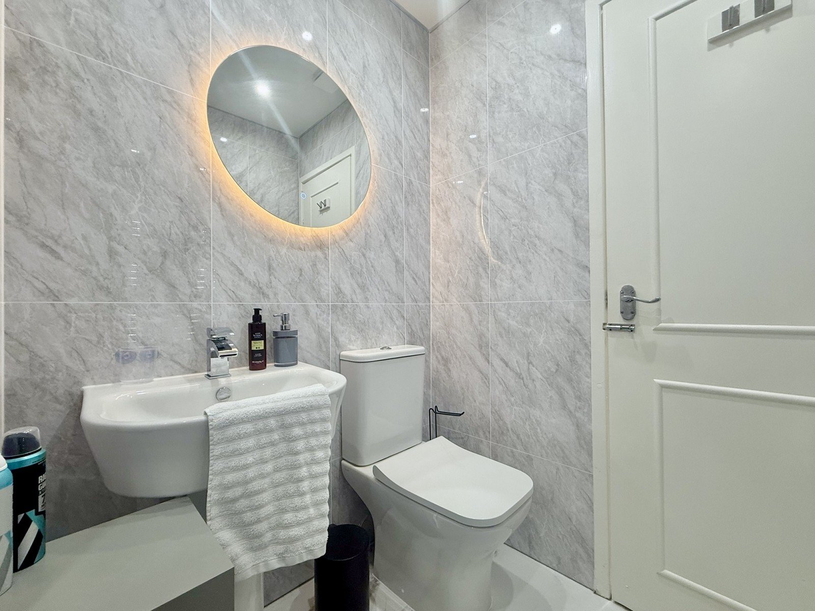 Upon entering, you are greeted by a welcoming ambiance that flows seamlessly throughout the apartment. The cosy yet spacious living room is bathed in natural light, creating a warm and inviting atmosphere. This space offers ample room for relaxation and entertainment, making it the heart of the home.