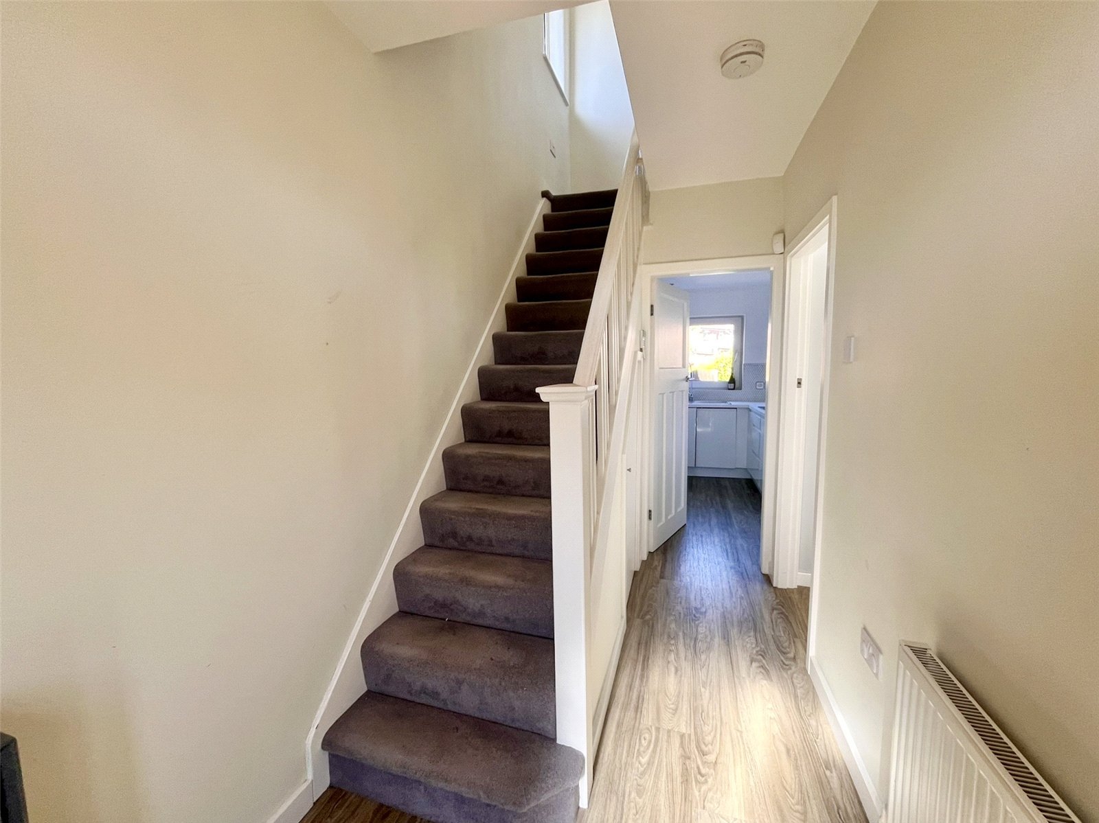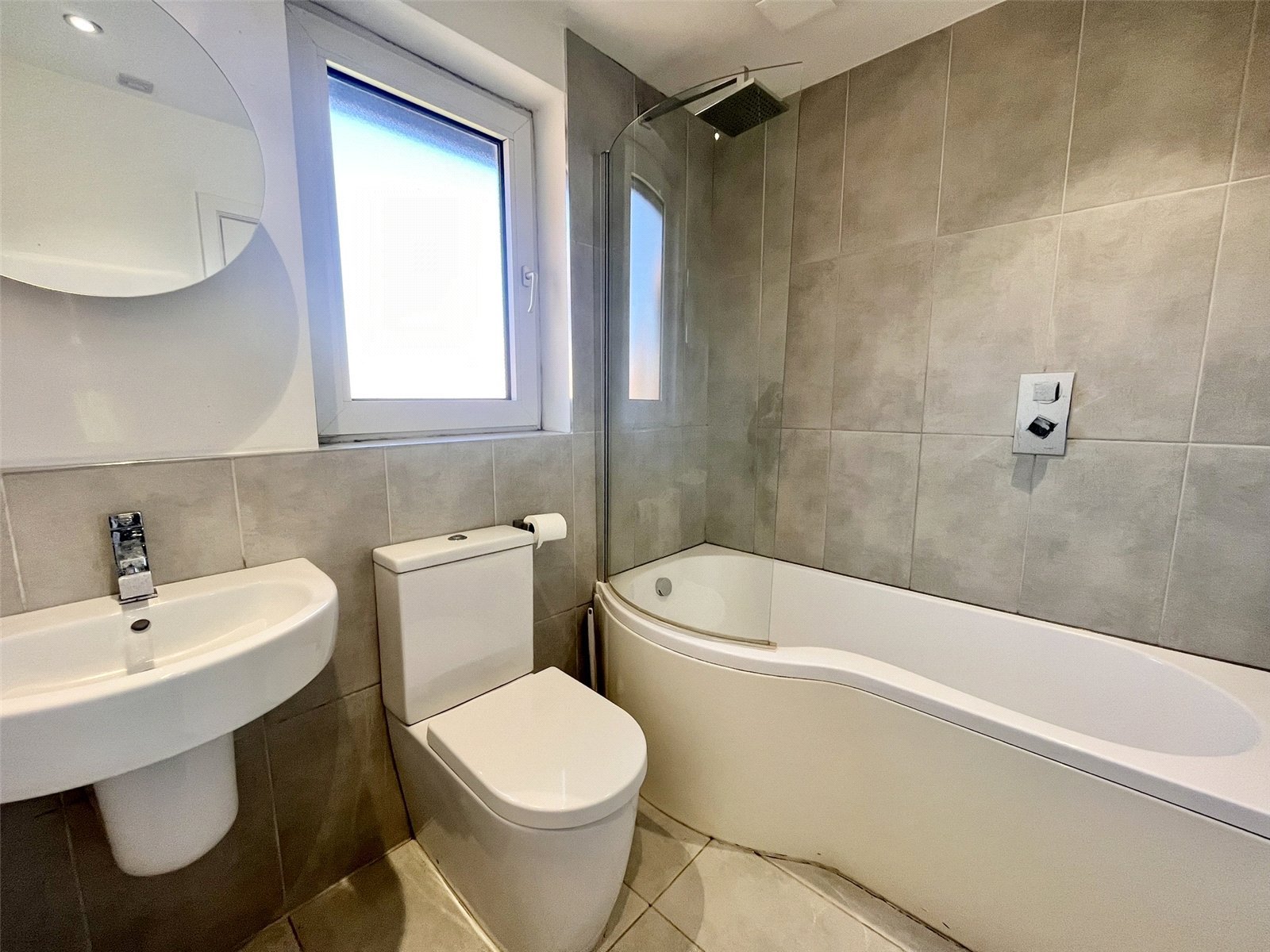 Upstairs, the property offers three bedrooms, including two generous double bedrooms and a third bedroom suitable for a nursery, guest room, or home office. A modern family bathroom completes the first floor.