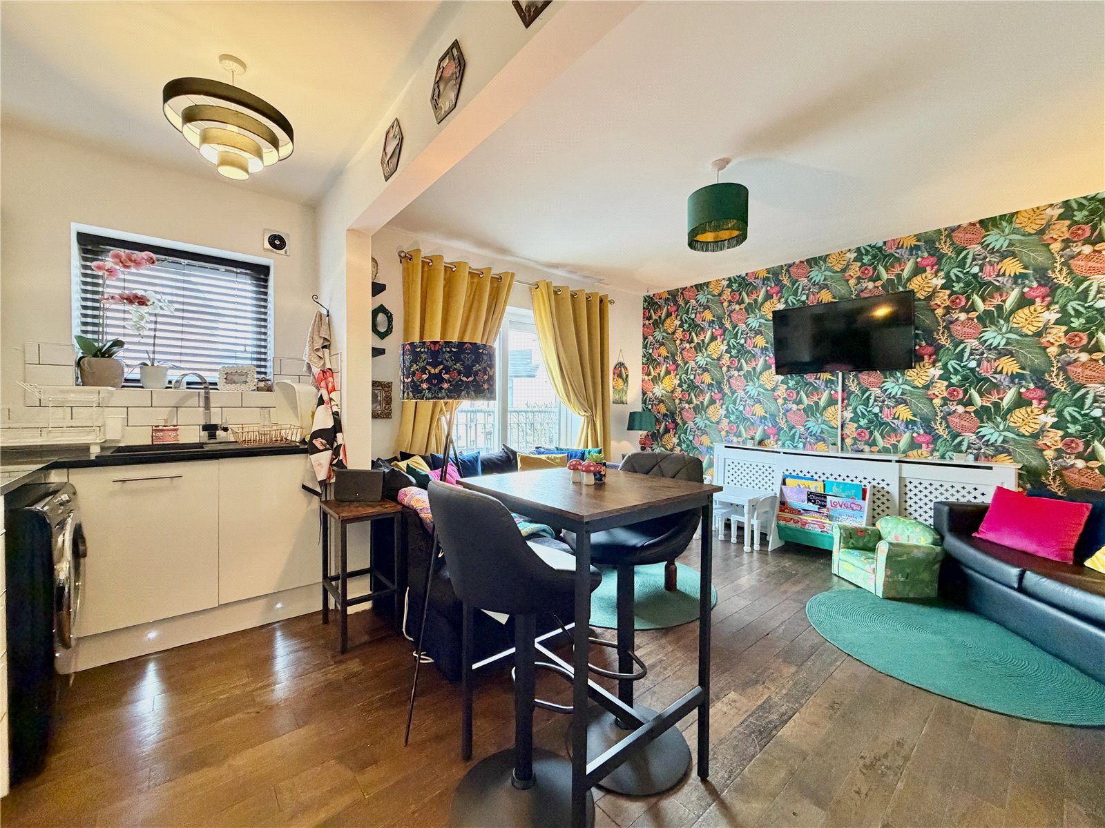 - • Bright open-plan kitchen and living area