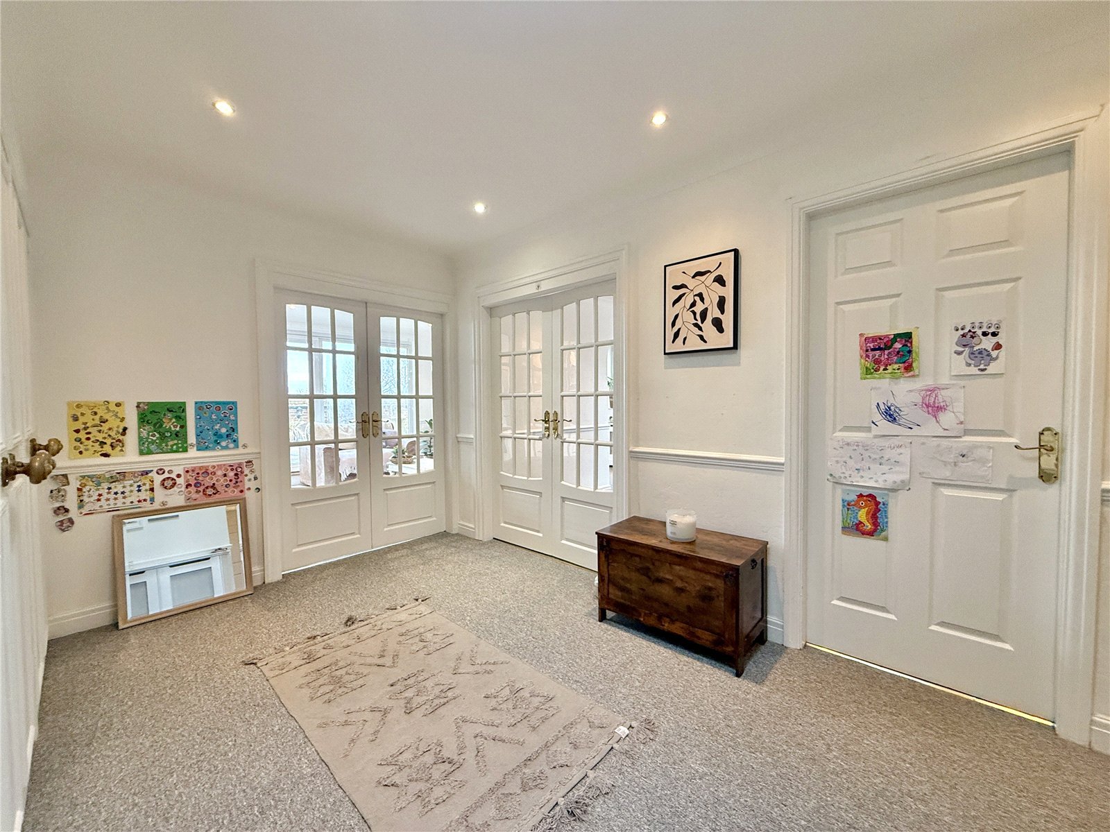 The apartment is accessed via a large and welcoming entrance hall, setting the tone for the scale and layout found throughout. At the heart of the home is a striking U-shaped lounge and dining room, an ideal space for both everyday living and entertaining. Patio doors open directly onto a substantial private roof terrace, creating a seamless connection between indoor and outdoor space and offering an enviable setting for dining, relaxing or hosting guests.