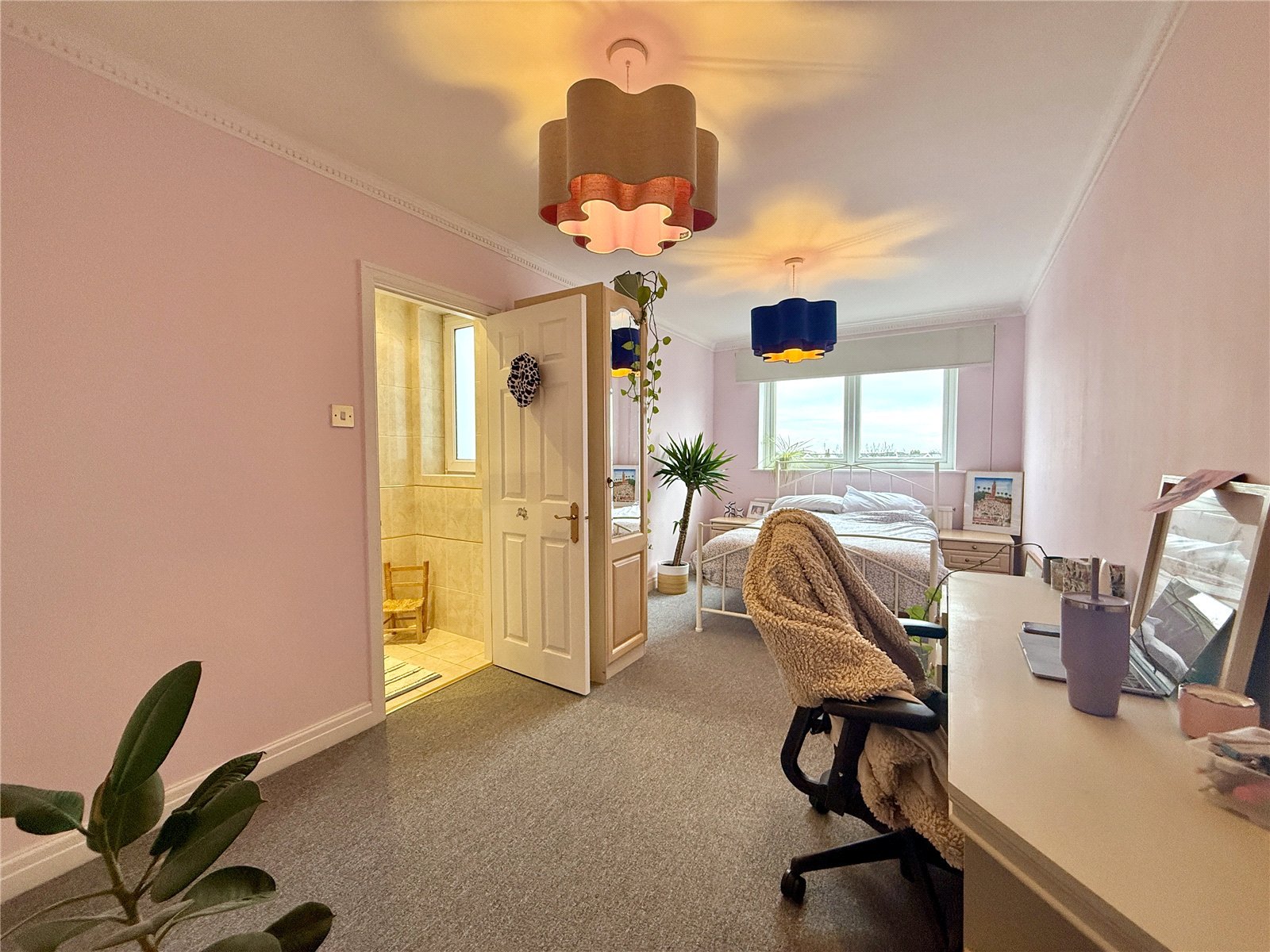 All three bedrooms are generous doubles, thoughtfully arranged to provide comfort and privacy. The principal bedroom benefits from its own en suite bathroom, while bedroom two enjoys a separate en suite shower room, making the apartment perfectly suited to families, professionals or sharers.